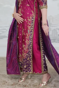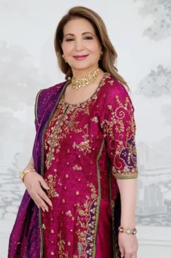 At Hoor Fashion PK, we curate this ensemble as more than fashion—it is a statement of refined femininity. The Bita Magenta Kurta – Farah Talib Aziz stands as a testament to timeless craftsmanship, radiant design, and the enduring allure of simplicity done beautifully.