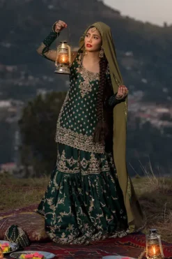 What sets Durkhanai apart is its ability to transcend occasions. Perfectly suited for festive celebrations, formal gatherings, or intimate soirées, this ensemble adapts beautifully to every moment. Its balanced color palette and refined accents allow for versatile styling—pair it with statement jewelry for a bold presence or keep it minimal for understated elegance.