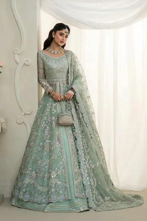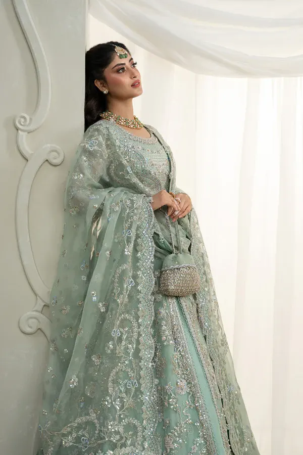 The charm of this ensemble lies in its delicate detailing and refined aesthetic. Intricate embellishments and thoughtful textures are harmoniously integrated into the design, giving the outfit a sense of depth and sophistication. Each detail is placed with intention, creating a composition that feels both luxurious and timeless without overwhelming the overall elegance of the piece.
