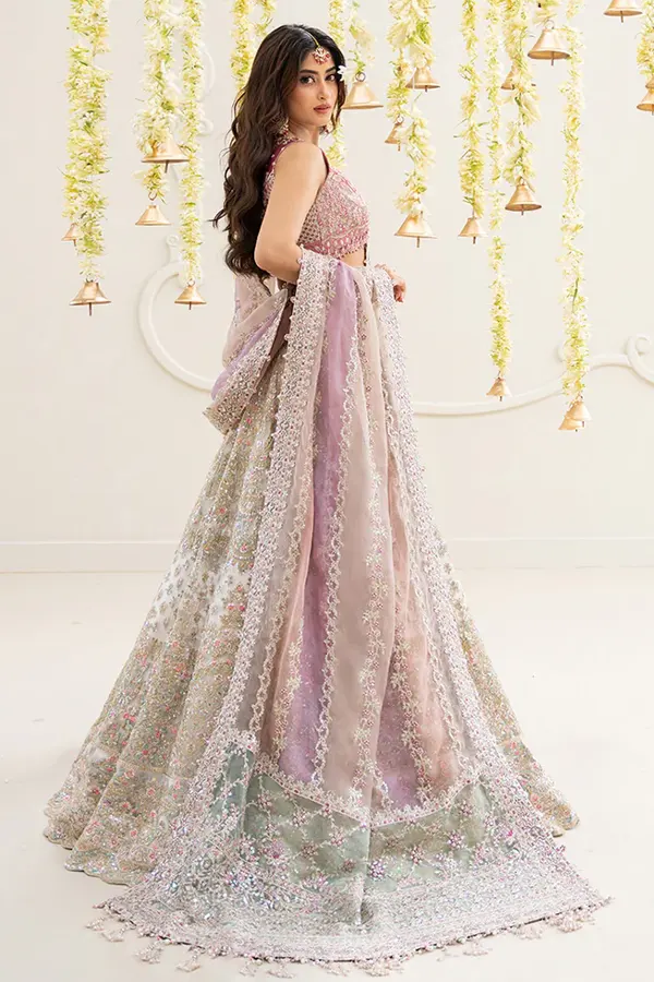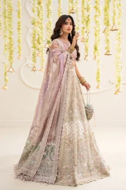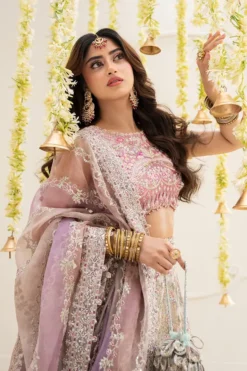 Intricate craftsmanship lies at the heart of Suzan. Delicate embroidery traces the surface like a quiet narrative, each motif thoughtfully placed to maintain harmony. Subtle embellishments catch the light with restraint, adding dimension and a refined glow without overwhelming the design. The artistry feels intimate and considered, reflecting Faiza Saqlain’s signature approach to modern luxury.