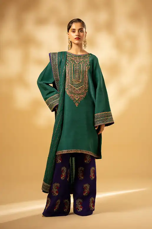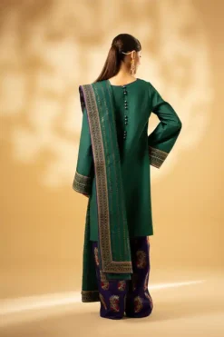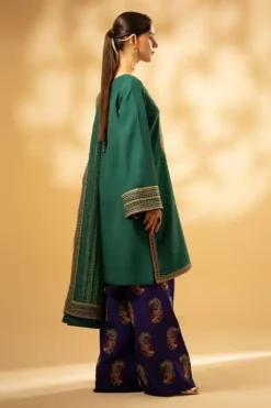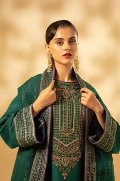 The Emerald Craftsmanship collection showcases intricate details and impeccable craftsmanship, reflecting Fozia Khalid’s commitment to quality and aesthetic brilliance. The garment features rich emerald hues that evoke a sense of luxury and opulence, making it a standout choice for formal events, weddings, or festive celebrations.Crafted from premium fabrics, this attire offers a comfortable and flattering fit, enhancing your silhouette while ensuring ease of movement. The delicate embroidery and embellishments are thoughtfully placed, adding depth and character to the overall design. Each piece tells a story of artistry and tradition, beautifully merging contemporary fashion trends with timeless elegance.