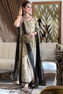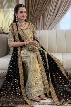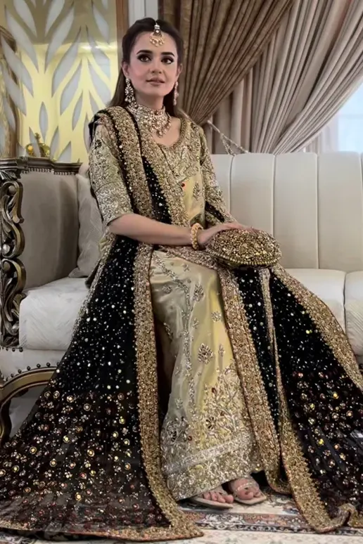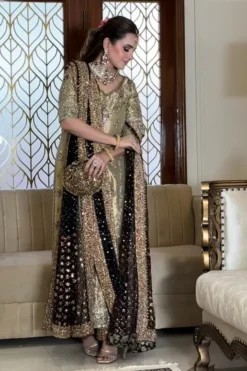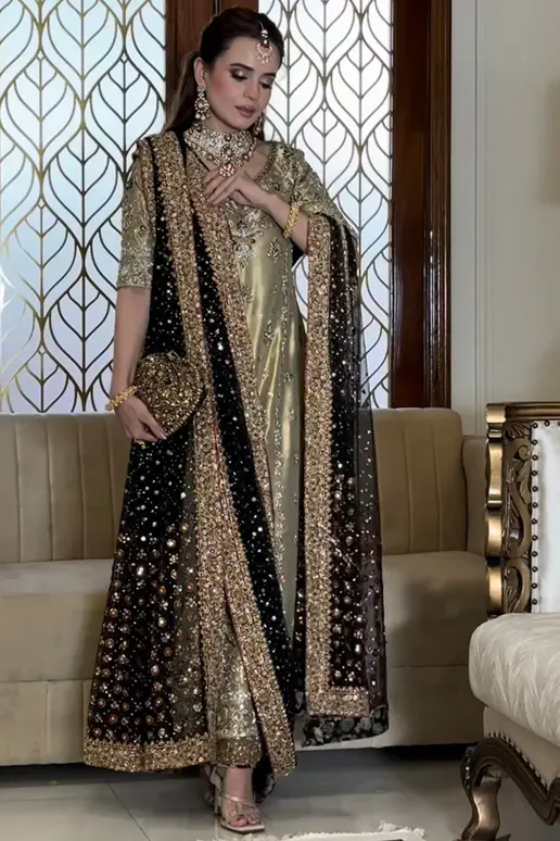 Where tradition whispers through threads of gold and modernity answers in bold black—introducing the Haris Shakeel Gold & Black Dress, a curated statement of contrast, elegance, and power.