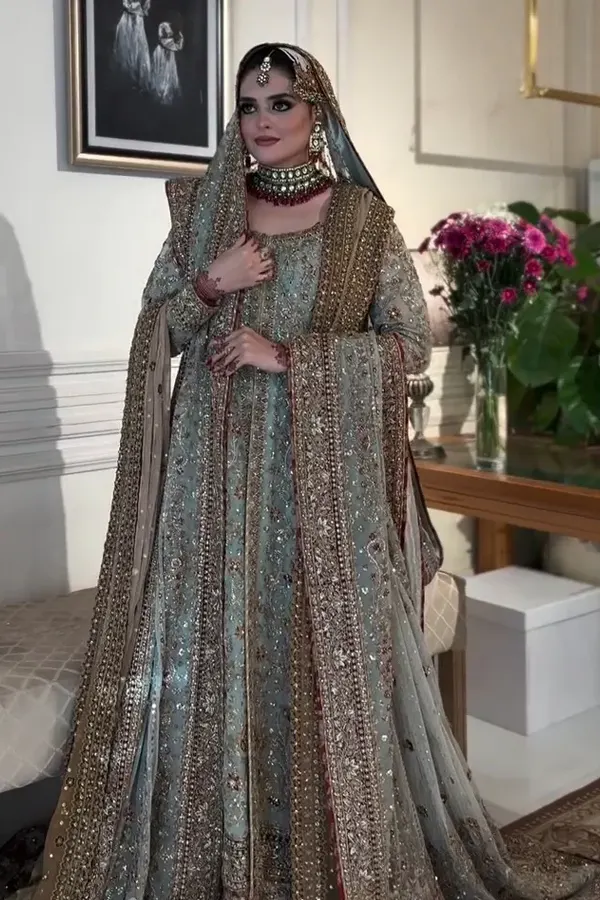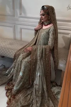 At the heart of Maharani lies intricate craftsmanship. The ensemble is adorned with detailed embroidery that reflects artisanal precision and dedication. Each motif is thoughtfully placed, creating a harmonious pattern that enhances the beauty of the outfit without overwhelming its refined structure. Delicate embellishments add a gentle radiance, catching the light subtly to create a soft, luxurious glow.