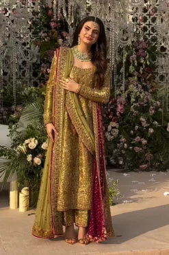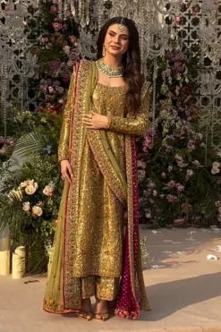An exquisite celebration of opulence and refined artistry, Olive Royale by Haris Shakeel is a statement of grandeur crafted for unforgettable wedding moments. Designed for those who seek elegance beyond convention, this luxury wedding ensemble embodies timeless sophistication infused with contemporary charm.