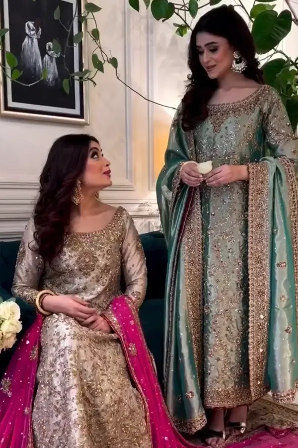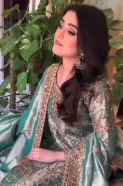 Sea Green Gold is where tranquility meets opulence — a design that captures the poetry of calm waters kissed by golden light. Created by Haris Shakeel, this ensemble is an ode to refined luxury, thoughtfully curated for the woman who carries elegance with quiet confidence. At Hoor Fashion PK, we present this piece as a statement of grace that feels both fresh and timeless.