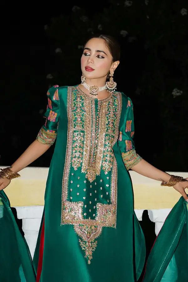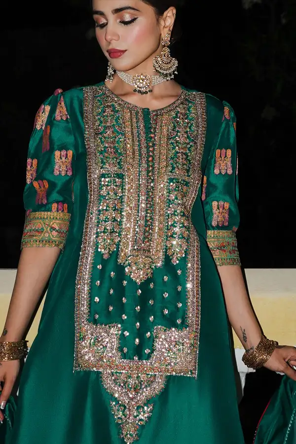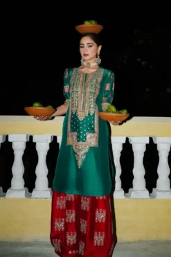 Hussain Rehar’s artistry is evident in the way Beryl captures timeless heritage through a modern lens. It’s a design meant for those who appreciate elegance that whispers rather than shouts, making it perfect for intimate soirées or grand celebrations.