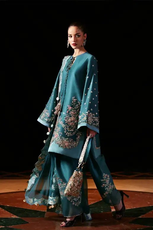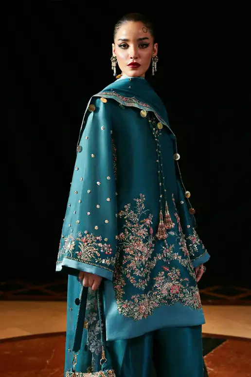 To wear Verta is to step into a narrative where boundaries dissolve. Its silhouette drapes with a fluidity that mirrors the wearer’s spirit—bold yet tender, regal yet unspoken. The interplay of sapphire and emerald hues evokes the depth of oceans and the enigma of forests, inviting you to lose yourself in its labyrinth of grace. Every fold whispers of forgotten empires, every gleam a promise of reinvention.