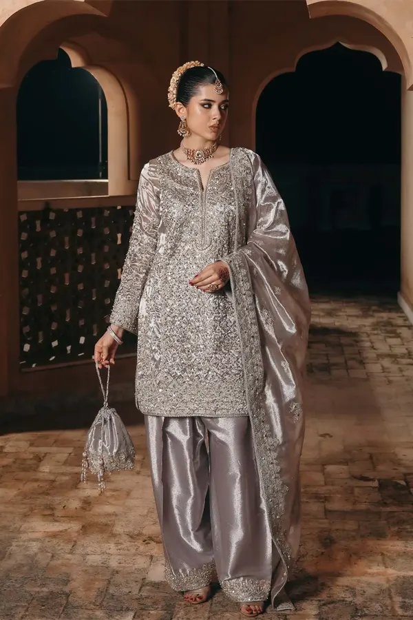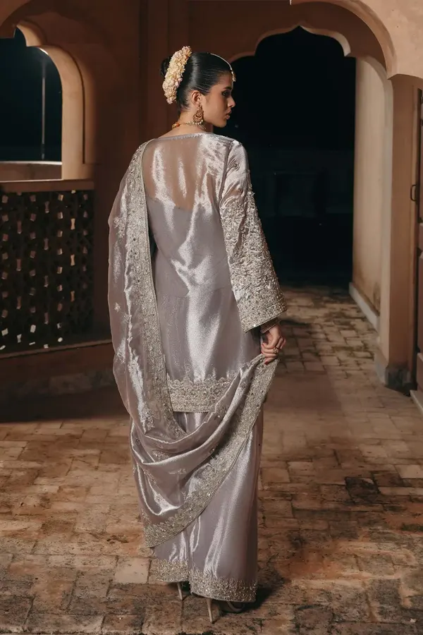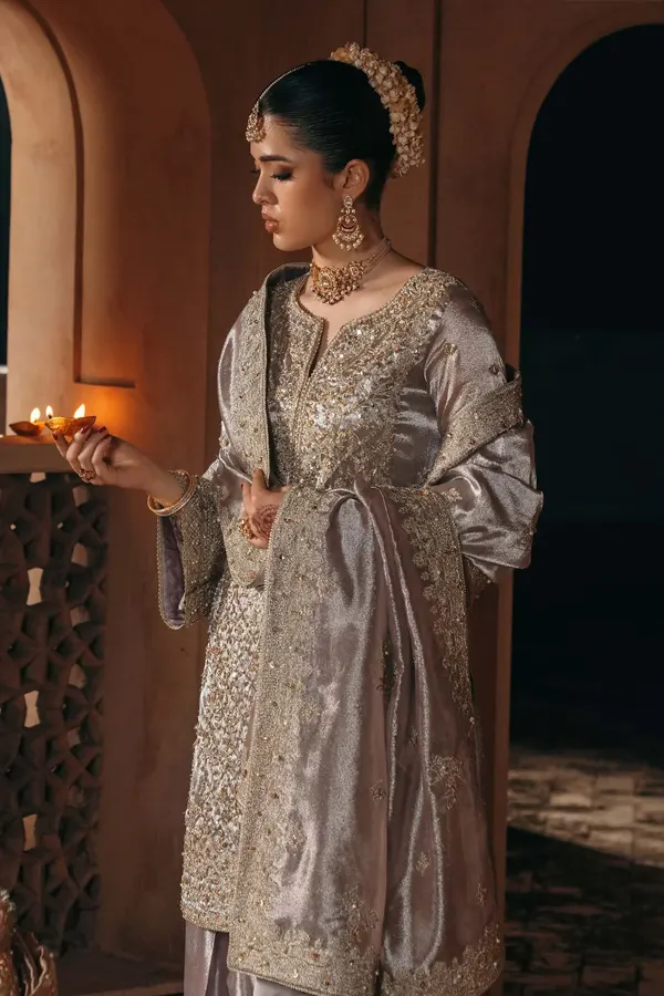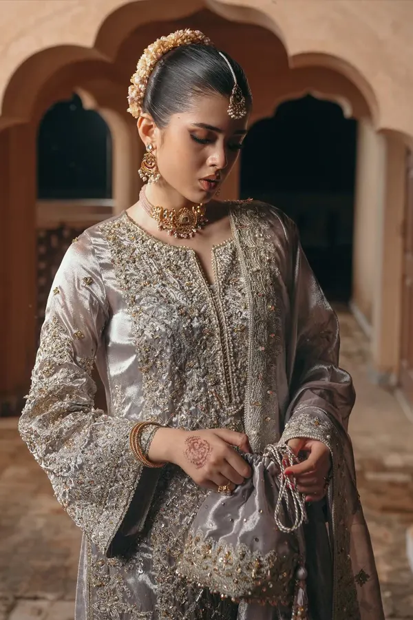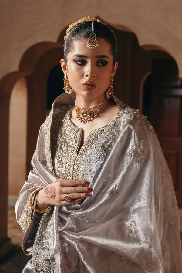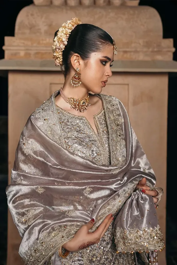 The Gulnaar collection is a masterful blend of intricate craftsmanship and innovative design, showcasing Kanwal Malik’s signature style. Each piece is a testament to Pakistan’s rich textile legacy, featuring handwoven fabrics like luxurious silks, delicate chiffons, and lightweight organzas that drape effortlessly to accentuate the wearer’s elegance.