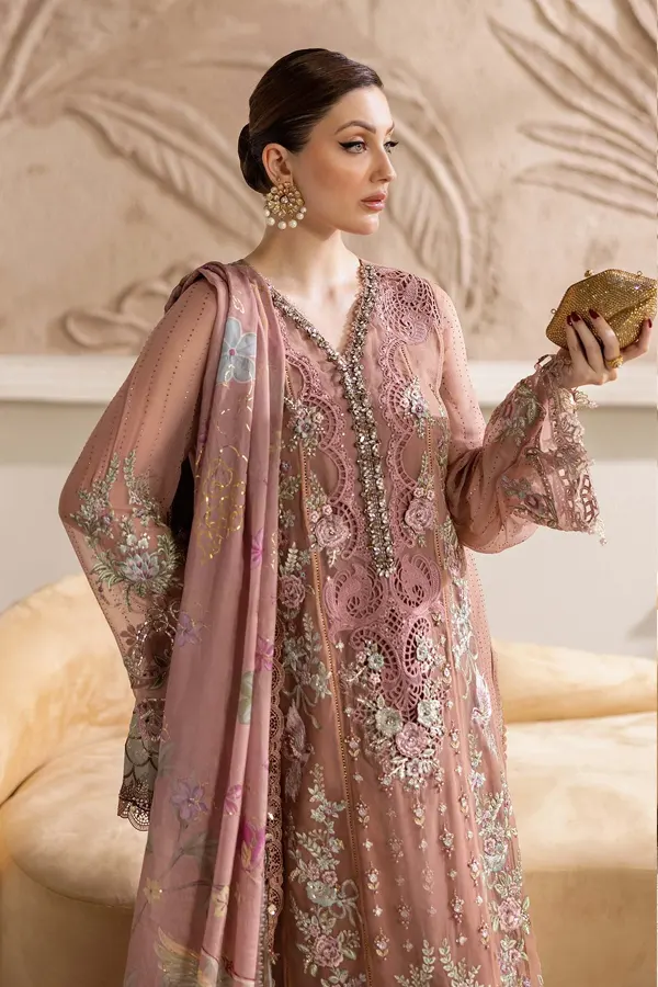 Embroidered Chiffon Center Panel With Hand Embellishment