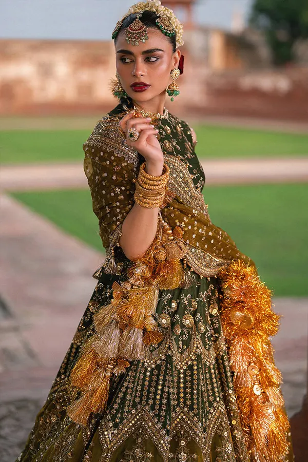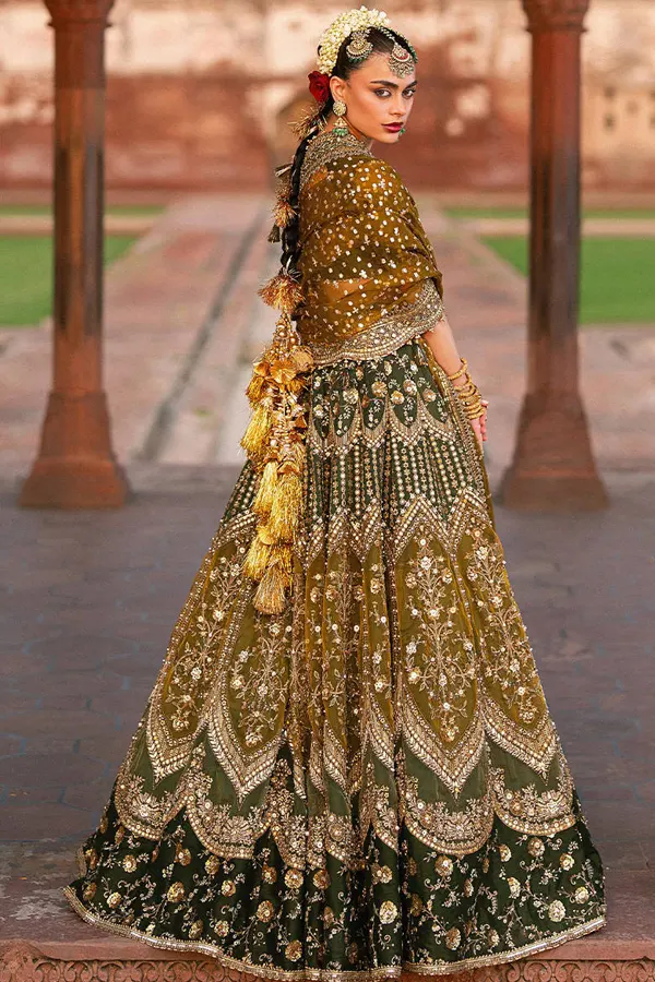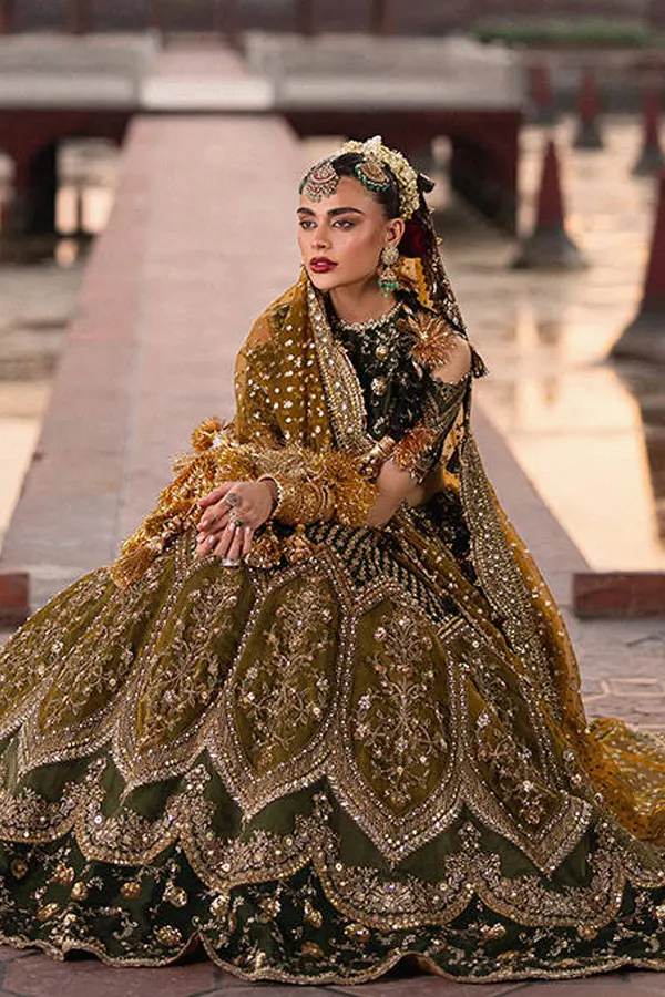The silhouette reflects classical eastern elegance, where every panel falls with a fluid rhythm and every detail is thoughtfully composed. Intricate embroideries bloom across the fabric like verses of an untold tale, echoing the grandeur of Mughal inspiration while remaining delicately modern. The craftsmanship speaks in a quiet, refined voice—never loud, yet impossible to ignore.