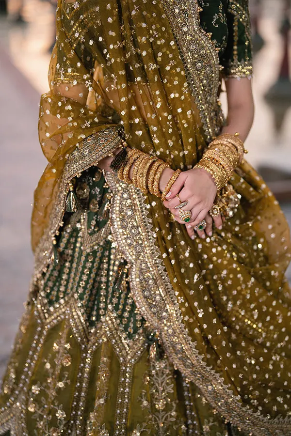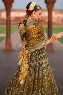Afsana captures the essence of festive nostalgia. The palette is rich yet balanced, allowing the embellishments to shimmer subtly with movement. Each motif appears hand-placed, creating a sense of depth and dimension that transforms the outfit into a wearable canvas. The harmony between texture and tone makes it ideal for occasions where elegance is expected and individuality is remembered.