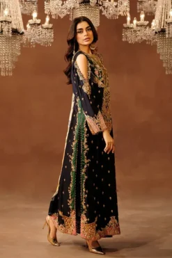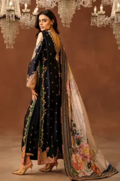 The silhouette of Shahana is thoughtfully composed to create a graceful flow, allowing the outfit to move naturally while maintaining a structured elegance. Its tailored form complements the body with subtle precision, offering both comfort and poise. The fabric drapes beautifully, creating a sense of fluid luxury that enhances the ensemble’s overall presence.