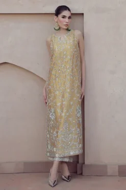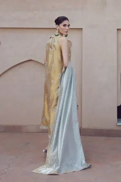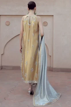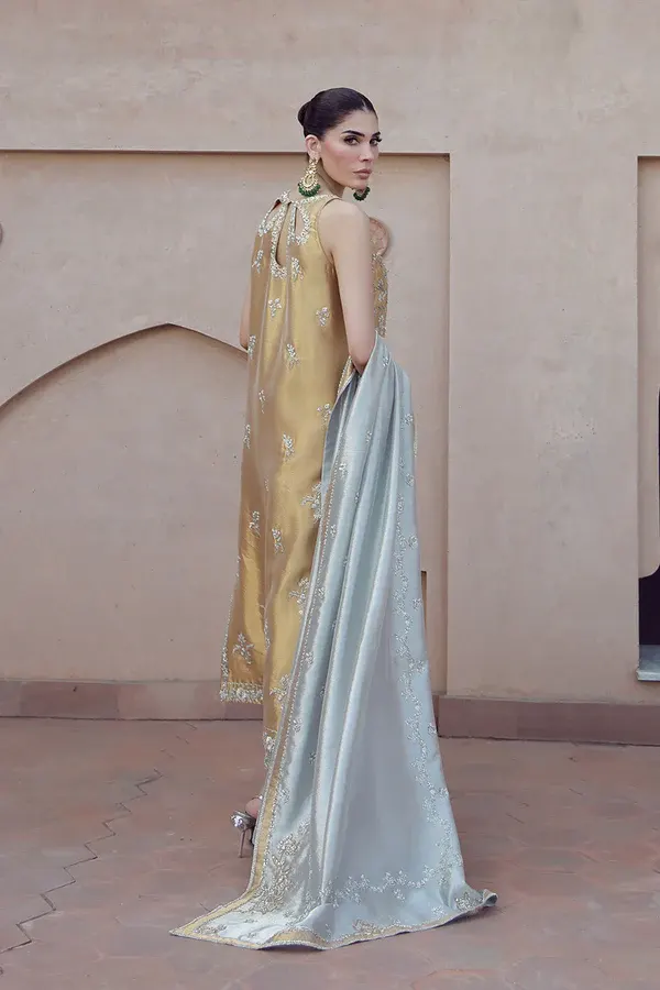 Aakifah embodies a poetic balance between refinement and radiance. Its silhouette falls with thoughtful fluidity, echoing the soft strength of feminine presence. Each curve, each fold, speaks the language of sophistication, designed to flatter while offering an ease of movement that feels almost ethereal. It is a piece that stands with dignity yet moves with effortless grace.