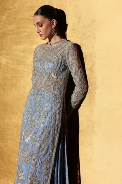 The silhouette is composed with fluid precision, offering a flattering structure that enhances movement while maintaining a poised presence. Crafted from premium-quality fabric, the outfit drapes effortlessly, lending a soft and luxurious finish. Thoughtfully placed detailing adds depth and texture, enhancing the design without overwhelming its clean and balanced aesthetic. Each element reflects an appreciation for refined craftsmanship and understated artistry.