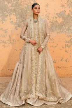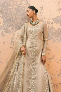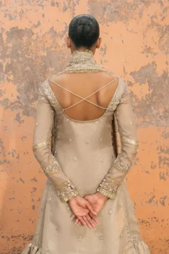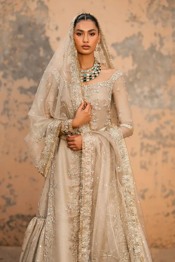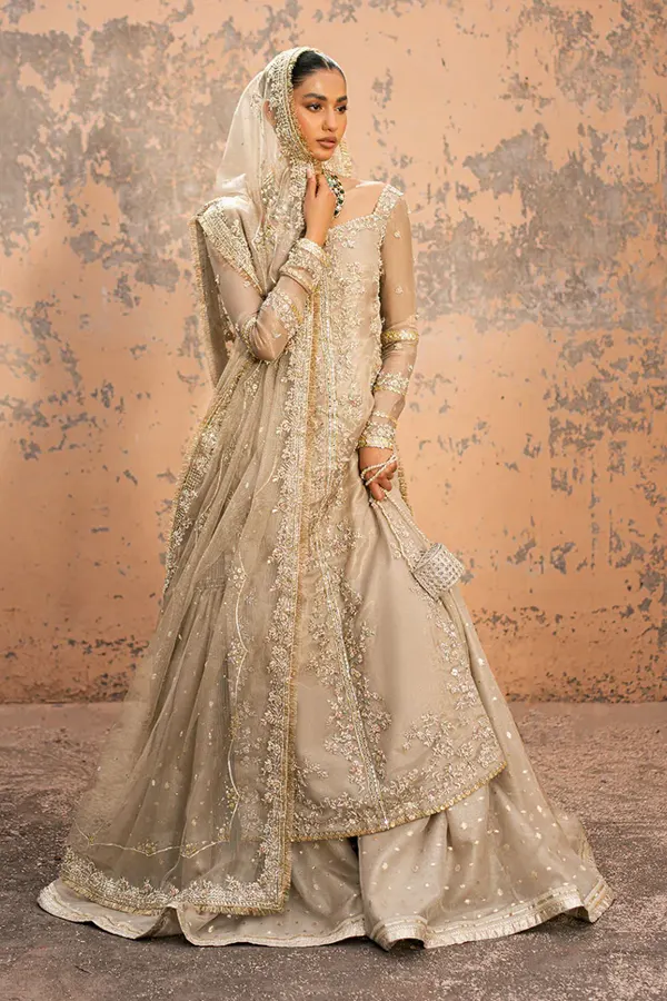 The artistry lies in its detailing. Every motif, every stroke of embroidery carries intention. Fine threadwork dances across the fabric like a soft breeze stirring petals, creating a visual rhythm that is both contemporary and timeless. The craftsmanship is precise yet poetic—an ode to the artisans who weave soul into every stitch. Whether you’re attending an intimate gathering or stepping into a celebratory moment, this design ensures you look ethereal from every angle.